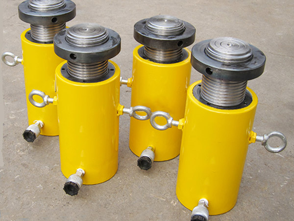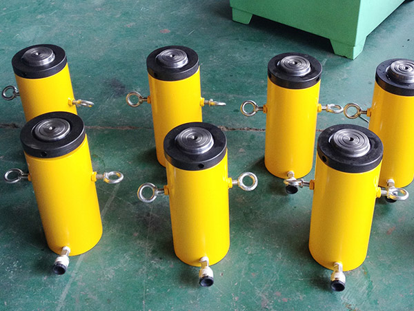 d)新的或久置的油壓千斤頂,因油缸內存有較多空氣,開始使用時,活塞桿可能出現(xiàn)微小的突跳現(xiàn)象,可將油壓千斤頂空載往復運動2-3次,以排除腔內的空氣。長期閑置的千斤頂,由于密封件長期不工作而造成密封件的硬化,從而影響油壓千斤頂?shù)氖褂脡勖杂蛪呵Ы镯斣诓挥脮r,每月要將油壓千斤頂空載往復運動2-3